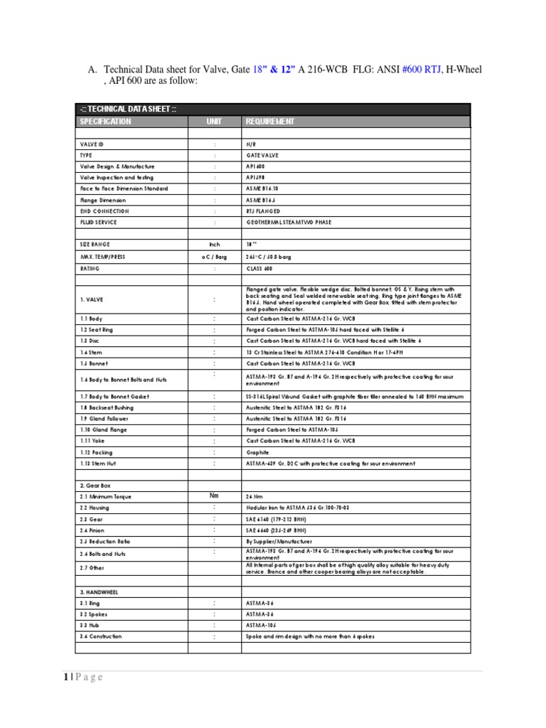 Valves Data Sheet Valve Materials